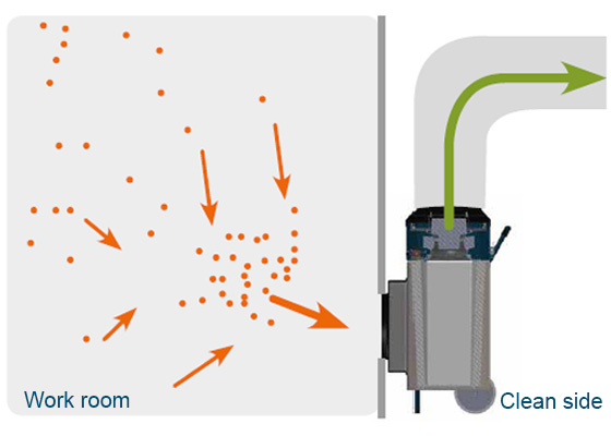 Limit values for hazardous particles in the air are constantly exceeded, resulting in a hazardous working environment. By circulating the air through a HEPA filter, class H13, at least 99.95% of particles between 0.15-0.3 µm are separated. The particle size has been chosen because it is most difficult to separate - both larger and smaller particles are easier to separate. Each filter has an individual test protocol.