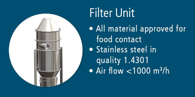 The Food Industry has special requirements. Control of components and equipment used in production is extreme, with a special focus on migratory risk, surface finish and antistatic properties. Dustcontrol has designed and installed many complete source extraction systems to the food industry. Each system has been unique and several have been designed to be installed in zone 22 according to ATEX Directives 2014/34/EU. So far we have aimed mainly towards cleaning and extraction systems in the ”dirty” side of food production, where there are generally lower hygiene standard requirements. Now, with our unique suction brushes and a complete source extraction system with all materials approved for food contact, we have a new and exciting solution with a market leading combination of features. It will give us the possibility to discuss and solve issues where systems need to be fully integrated into the production process, including for recycling and much more. Dustcontrol designs and installs complete source extraction systems in close co-operation with our customers. Our source extraction systems can be fully integrated into the production process for recycling or used for efficient and neat centralised vacuum cleaning. In other words – Good for Food, by Dustcontrol.