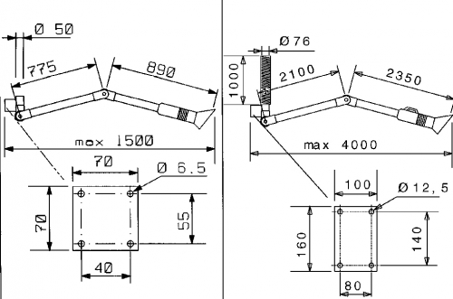 Extraction arm for welding fume etc. This articulated arm is easily adjusted to the correct working position. The hood is equipped with a 24 V 50 W halogen work lamp and dual switches for lamp and Shutter Valve El control. The 76 mm Extraction arm should always be installed with 1 m of 76 mm hose between the arm and tubing system.