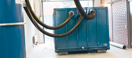 By installing inlet/outlet connections on larger containers (4-8 m3) an efficient inertial separator is built. Separation and containment of extracted waste directly in a closed container is a desirable handling method for a variety of reasons. Among these is that the system remains closed and that the handling of the waste can be done both rationally and economically.