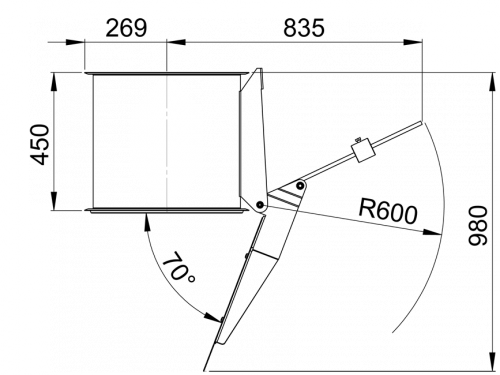 This arrangement replaces the standard cone and functions by closing automatically when the system is in operation and releasing collected material when the system is at rest. Note: only for use with suitable material.