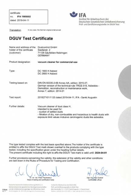 The DC 2800 H Asbestos meets the highest demands in some countries and is certified by IFA. Asbestos is a hazardous material that should be removed with caution. The dust extractor is equipped with antistatic hose, a plug for the cyclone inlet, orange plastic bags and other safety precautions. Don’t compromise your health when removing Asbestos!