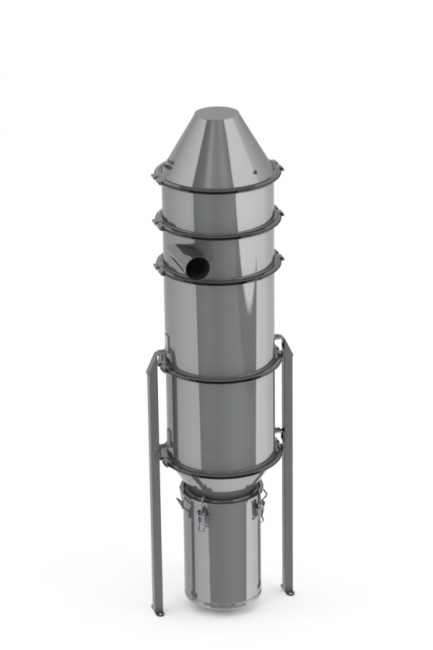 The filter cyclone is manufactured in 1.4301 and is intended for use in the food industry.