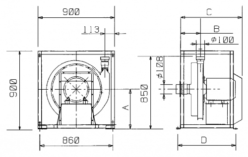 The RAF 500S is for application in extraction systems for lighter dust, ie: wood dust. It is a twin wheel, series connected unit. The unit is direct drive and has minimal service requirements. (Lubrication interval 10000 hours.)